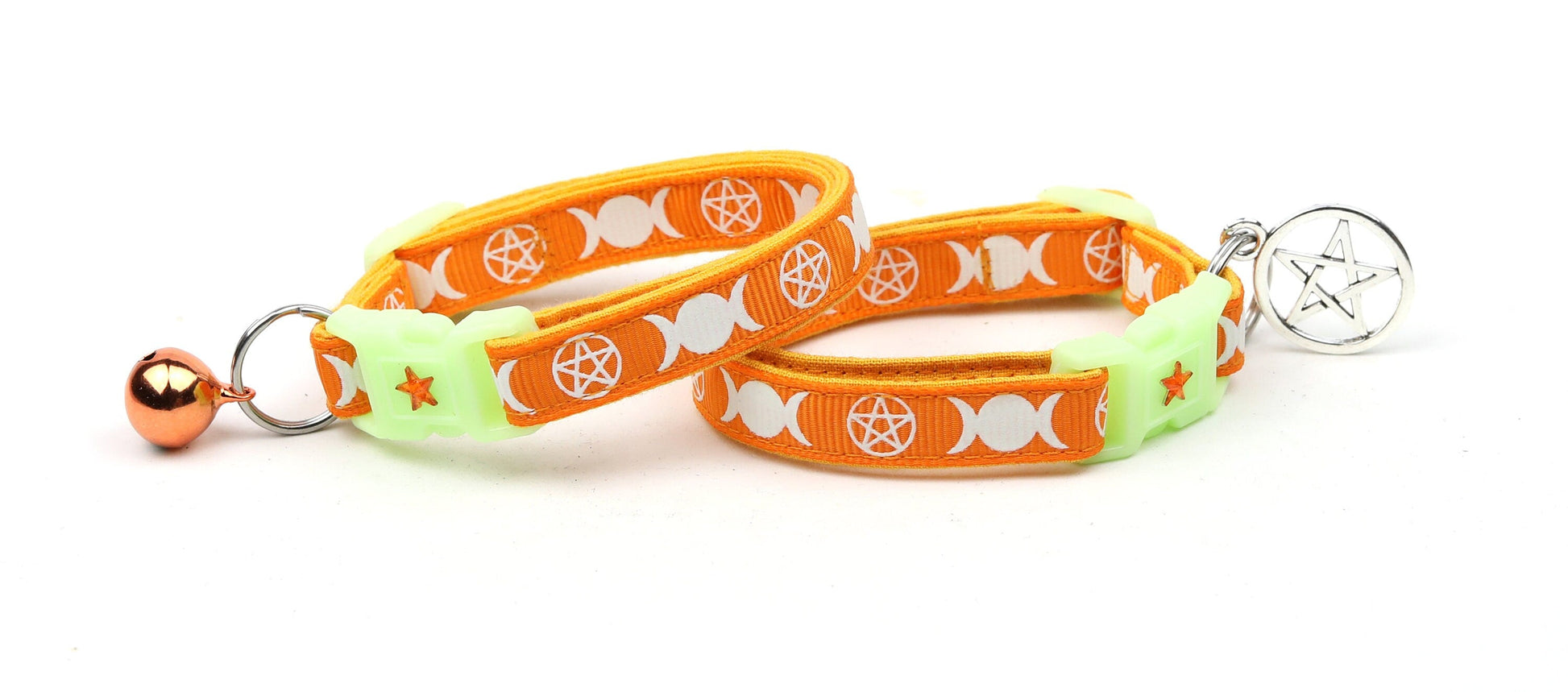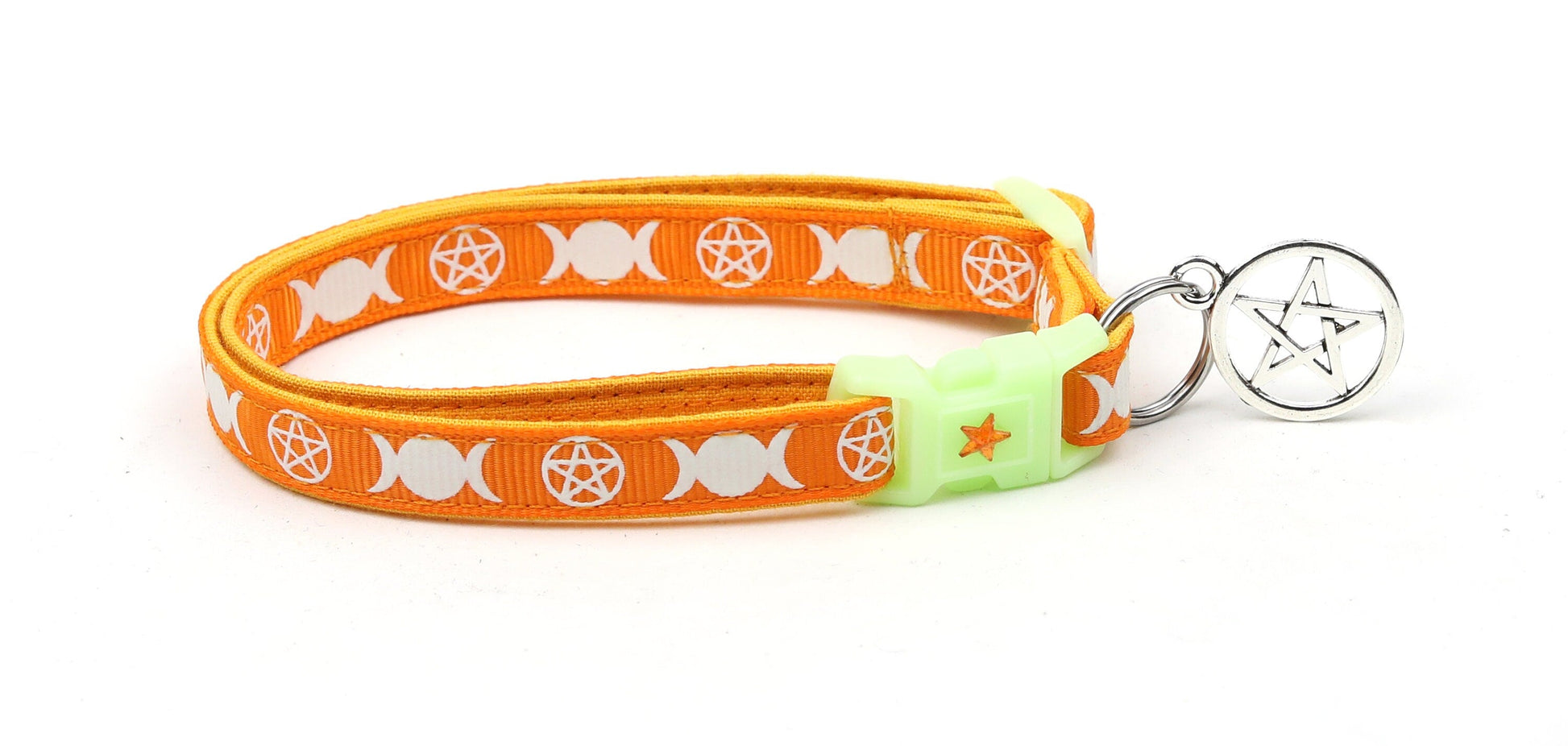 Reinforced cotton makes a great collar material because it is soft, light, as well as sturdy. It is also machine washable which all pet owners know is a "must have!". We use breakaway clips on our cat collars for your kitty's safety. If you insist on a non-breakaway collar I can make one custom for you if you contact me. The bell can easily be removed if you prefer.