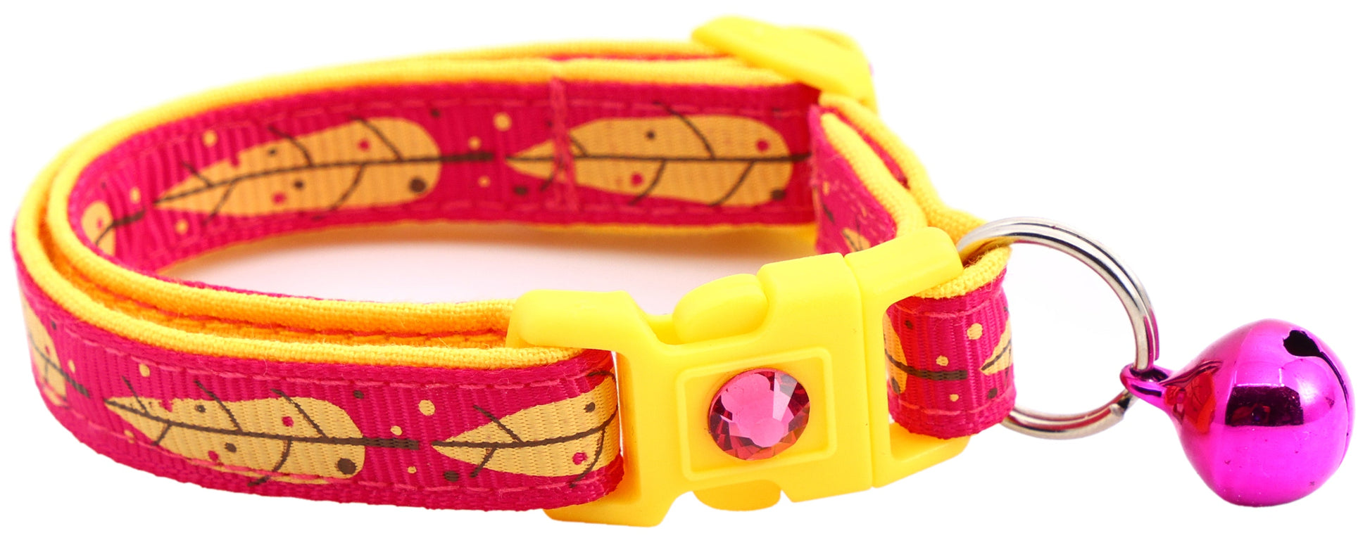 Yellow Bird Feathers on Bright Pink Cat Collar